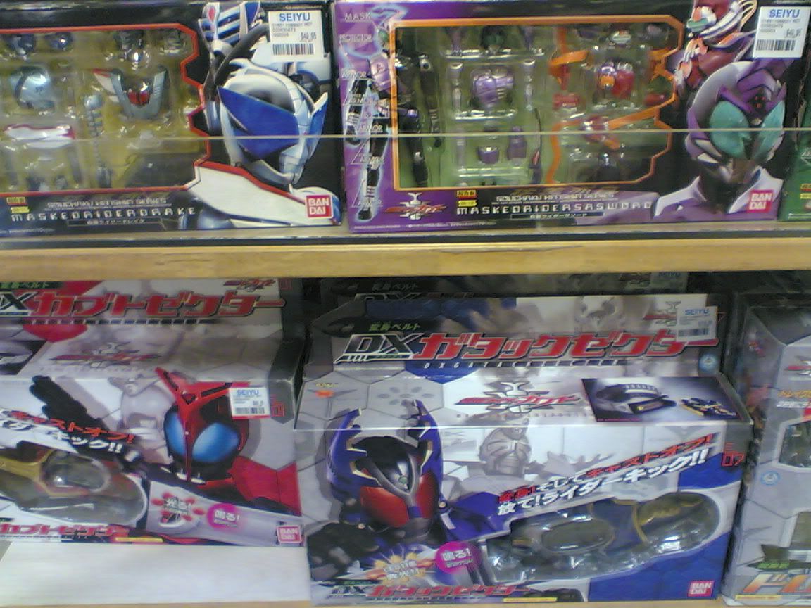 Henshin~! (transform)... kamen rider kabuto toys ... how much? the bloody belt cost 110SGD plus .. fuk ... a belt n a device ... lol ... i wonder who will buy? other than belt there is sword version for Kamen Rider Sasword and gun version for Kamen Rider Dragonfly (i tink is call dragonfly) ... never get to see TheBee henshin toy .. anyway nowadays kids toy are so expensive .. wonder nxt time my children toy will cost how much ...