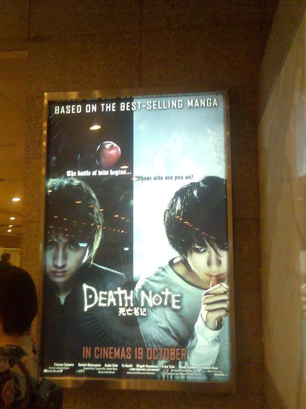 Finally Death Note the movie is coming to Singapore .. 19 oct .. death note is my favourite manga ever since last year ... but kinda stop reading about it coz no seeder to upload .. but i love the storyline though ... imagine a note book which allows u to kill someone by writing his detail n the way he die on the notebook and actually happen ... no nid to dirty our hand n can get rid of your enemy .. nice rite ..