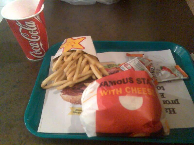 Today is my first meal at Carls Jr .. woot .. i order Famous Star combo ... $7.40 .. nt bad .. free flow of drinks and e burger is big n fries are normal ... jem bought e beef chili cheese fries then kinda full for him coz he ate e duno wad japan food b4 tt ... lol